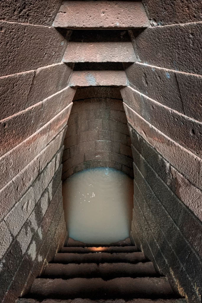Questa architettura non rispondeva a esigenze pratiche di approvvigionamento idrico – molto più facilmente risolvibili con sistemi semplici – ma a una volontà rituale e simbolica: scendere nella scala significava intraprendere un viaggio verso il divino.